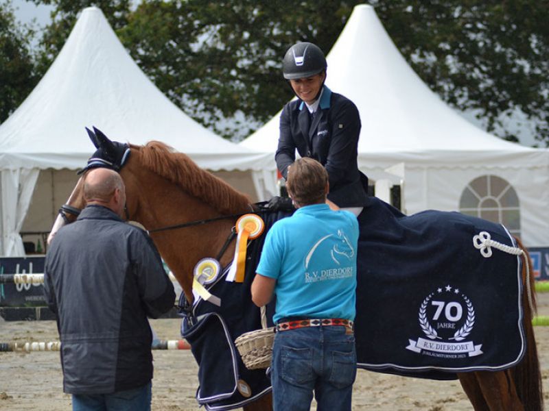 Vom 28. bis zum 30. Juli 2023 fand auf der Dierdorfer Reitanlage nach dreijähriger Pause wieder das traditionelle Reitturnier statt. Das Nennungsergebnis war mit über 800 angemeldeten Starts in den Springprüfungen von E bis S sensationell gut. Leider machte uns das Wetter einen Strich durch die Rechnung, da es von Donnerstag bis Sonntag mit nur kleinen Unterbrechungen regnete und unser gepflegter Sandplatz arg leiden musste. Dennoch sah man in allen Prüfungen gute Ritte und es gab keinerlei negative Vorkommnisse.