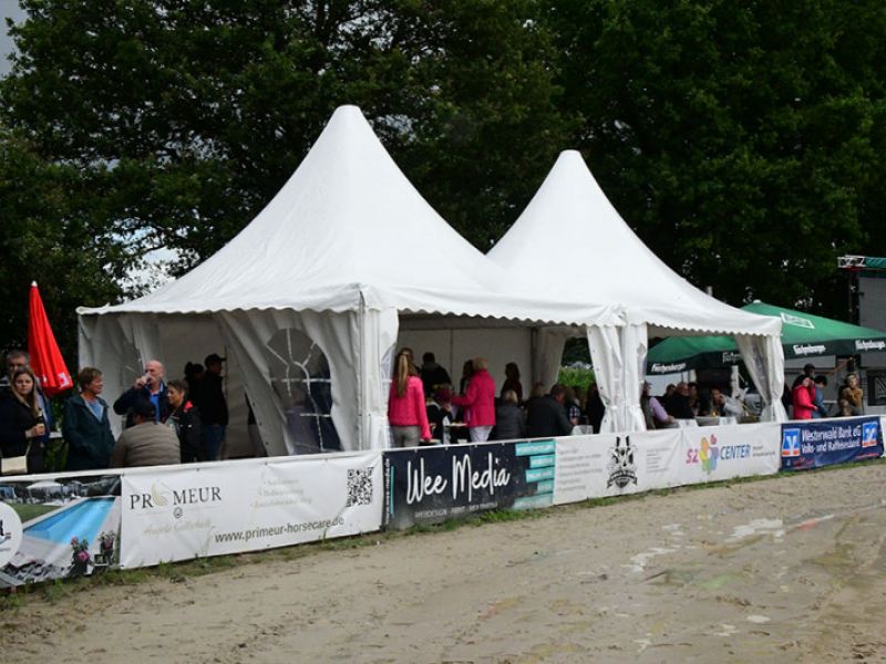 Es war das erste Turnier des Z.R.F.V. Dierdorf u.U. e.V. gemeinsam mit dem Horseteam Marcel Schneider, den neuen Eigentümern von Halle und Stallungen. Und man kann sagen, wir haben klasse zusammengearbeitet und ein tolles Turnier auf die Beine gestellt, das von allen Seiten gelobt wurde. Das überwältigende Zuschauerinteresse am Sonntag hat uns alle für die Mühen und vielen Stunden Arbeit vor und während des Turniers mehr als entschädigt. Ein volles Gastro-Zelt, der sehr gut besuchte Empfang der Sponsoren und die in Scharen rund um den Turnierplatz sitzenden und stehenden Zuschauer gaben eine herrliche Kulisse für die Aktivitäten in der Arena ab.